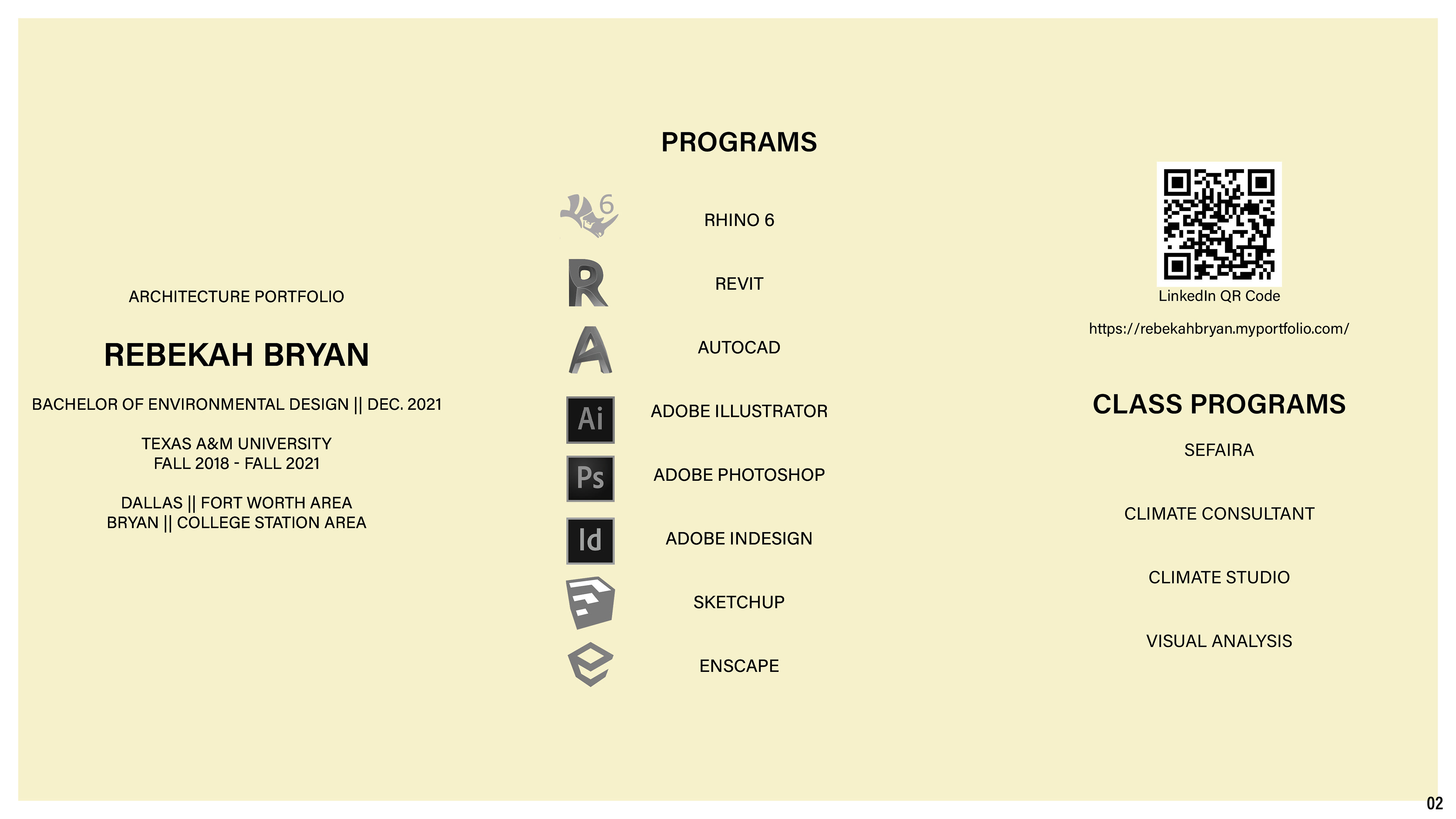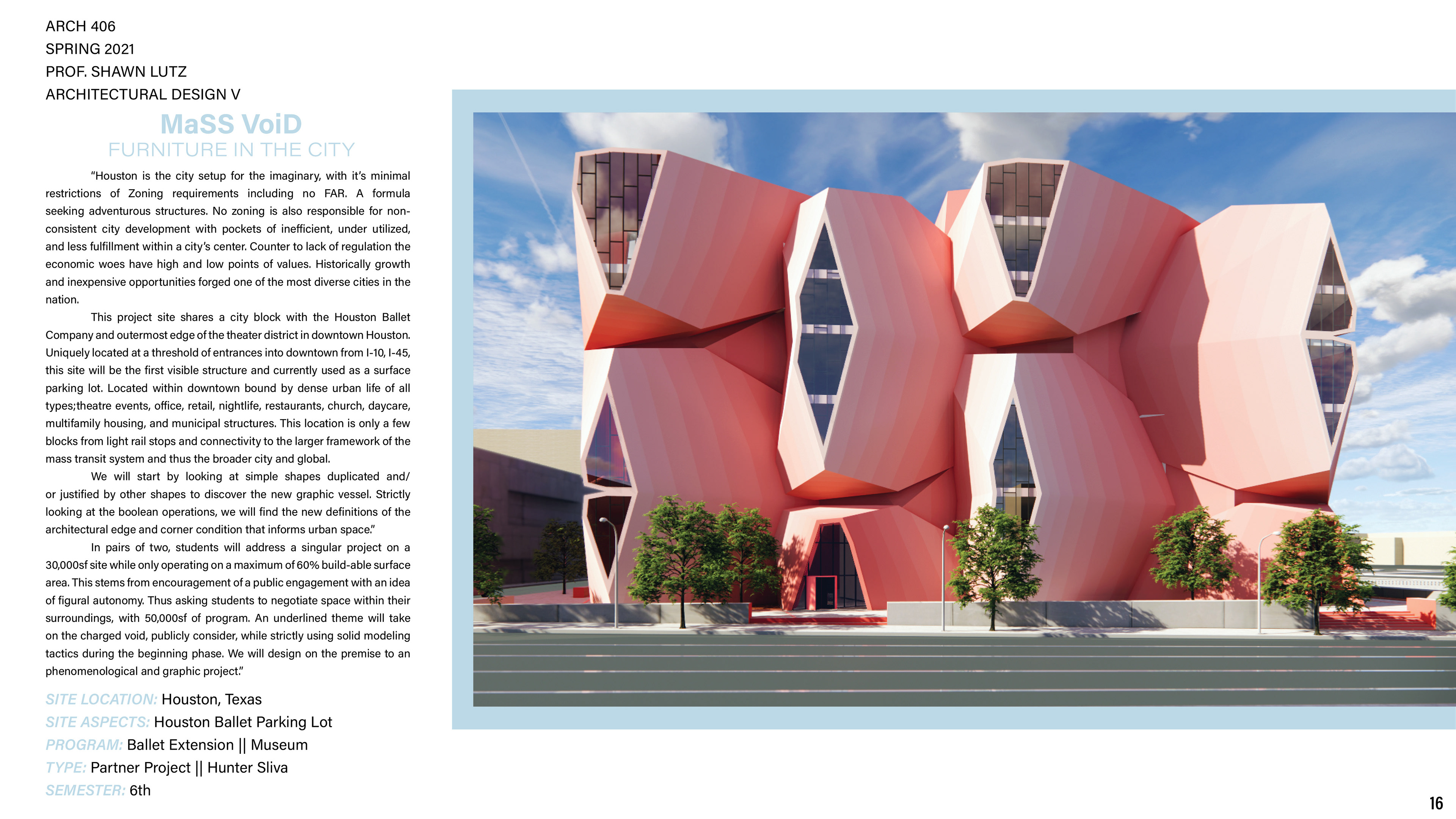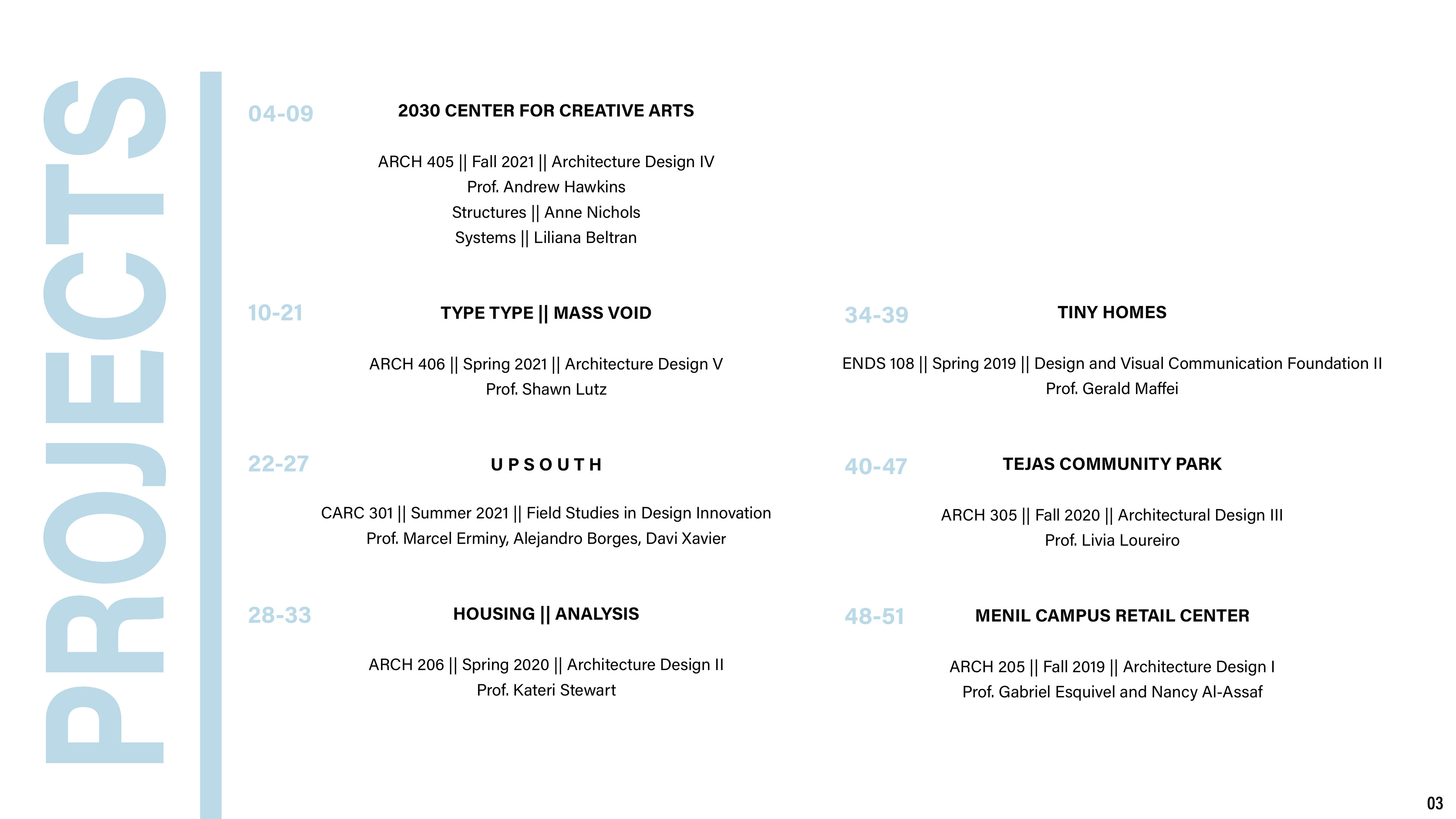 Portfolio put together during my undergraduate years at Texas A&M. These pages contain more in depth information about each project, but less drawings and images.